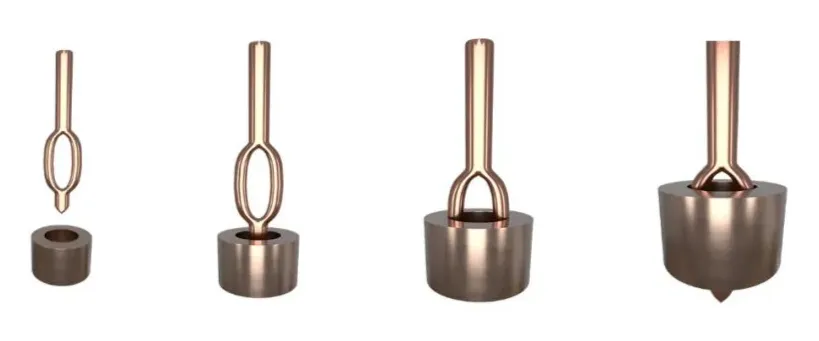 將魚眼端壓入PCB孔中,通過較小的壓入力獲得較高夾持力。在壓入過程中,魚眼端產生彈性變形,並提供低接觸阻